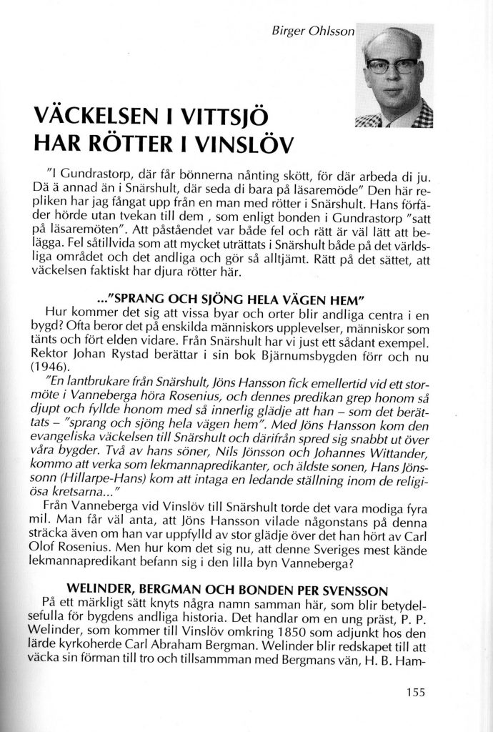 Väckelsen i Vittsjö har rötter i Vinslöv -av Birger Ohlsson