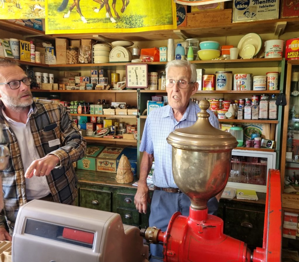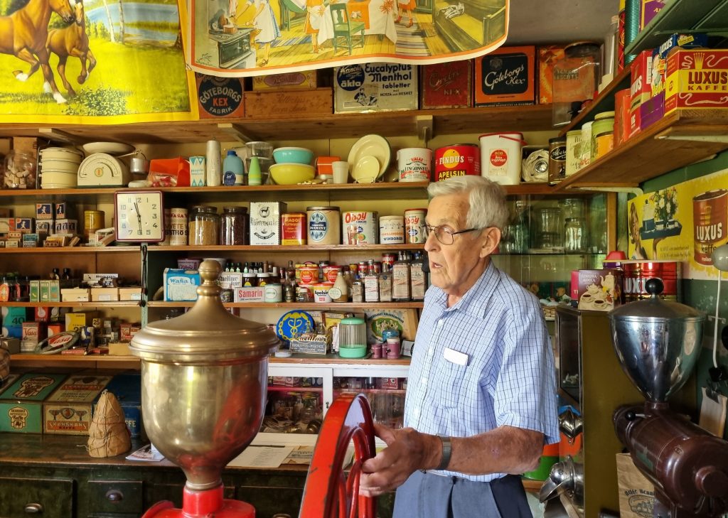 Carl-Olof och Lars i lanthandeln Varor i handelsboden Lars Henningsson guidar Malet kaffe Stängningsskylt