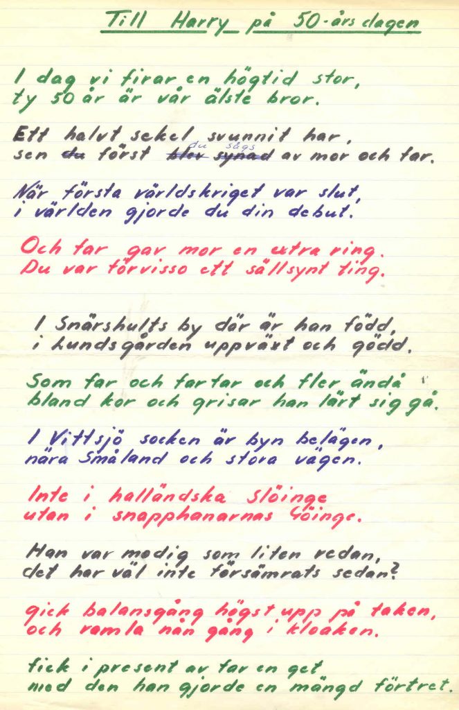 Dikt till Harry Lunnergårds 50-årsdag