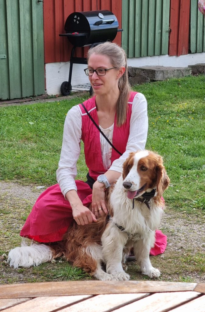 Evelina med en av hundarna i nya Lundsgård